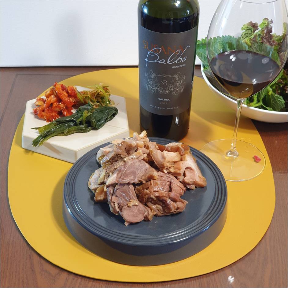 수사나 발보 시그니처 말벡을 된장 냄새가 구수한 족발과 함께 먹어봤어요.