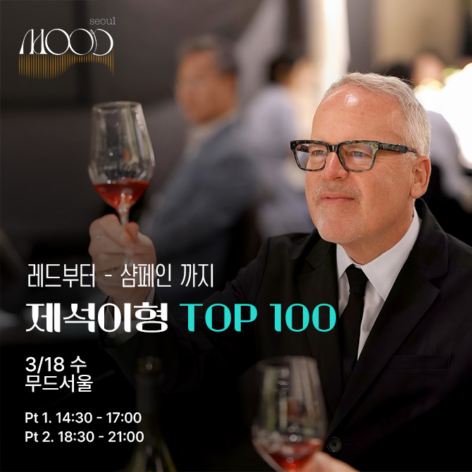 행사는 총 2부로 나누어 운영된다. 1부(14:30~17:00)는 11만 9천 원에 무제한 테이스팅(스탠딩)을 즐길 수 있으며, 2부(18:30~21:00)는 14만 9천 원에 무제한 테이스팅과 더불어 무드서울 디너 뷔페와 지정 좌석 서비스가 제공된다. 시음 리스트에는 1위 와인인 샤또 디쌍을 포함해 돔 페리뇽, 피라 바롤로, 키슬러 샤르도네 등 TOP 100 리스트에 이름을 올린 정상급 와인들이 대거 포함되었다.