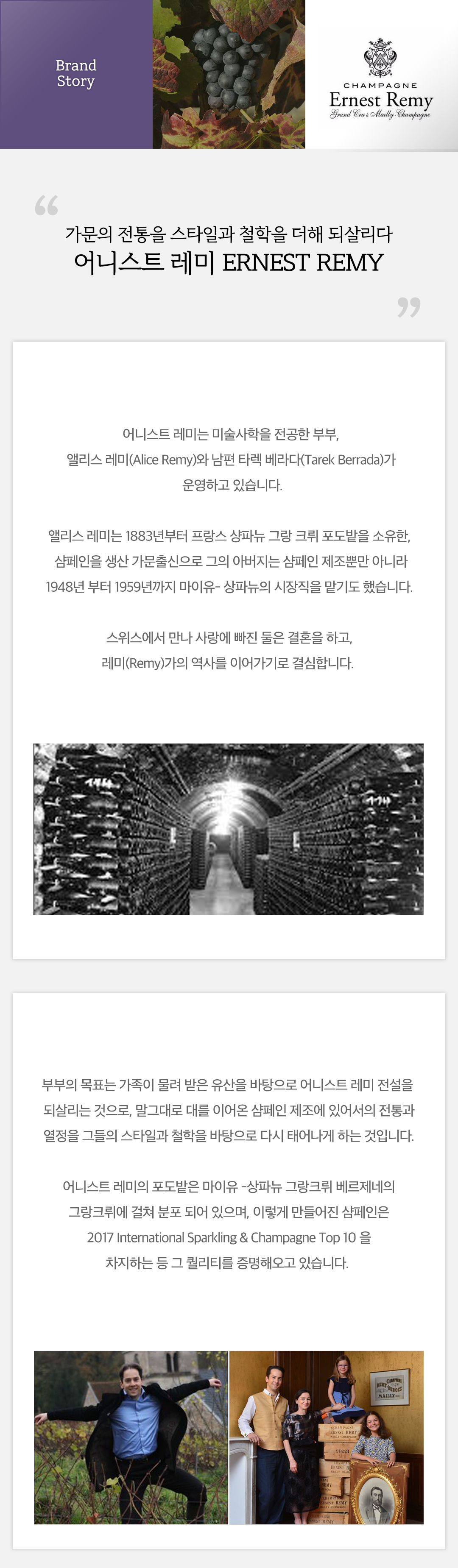 가장 오래된 그랑크루 밭 수령 40년 이상의 피노누아와 마일리 샴페인 그랑크뤼 떼루아 샤도네이를 혼합해 생산하는 어니스트 레미 최고급 샴페인