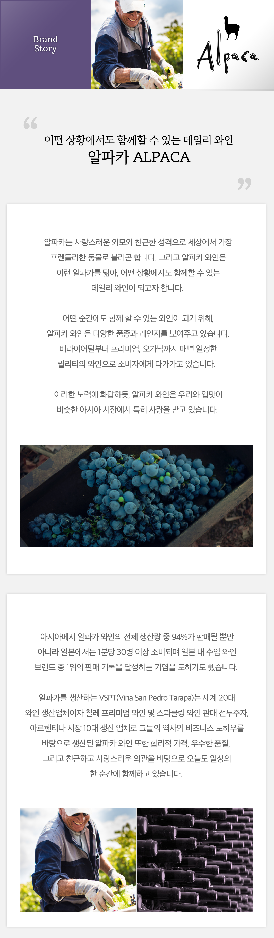 아시아에서 전체 생산량 중 94% 판매 1분당 30병 이상의 알파카 와인 소비