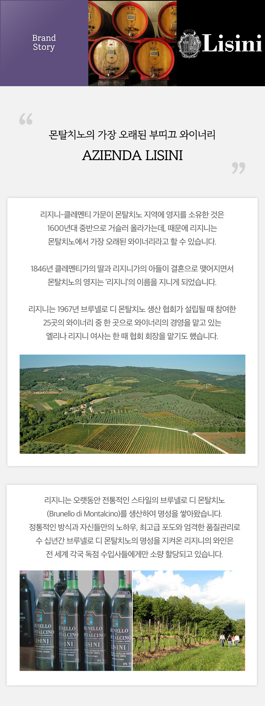 2013년 빈티지 3500병 생산. 몬탈치노 남쪽의 그랑크뤼로 불리우는 Sesta에 위치한 리지니의 포도밭.