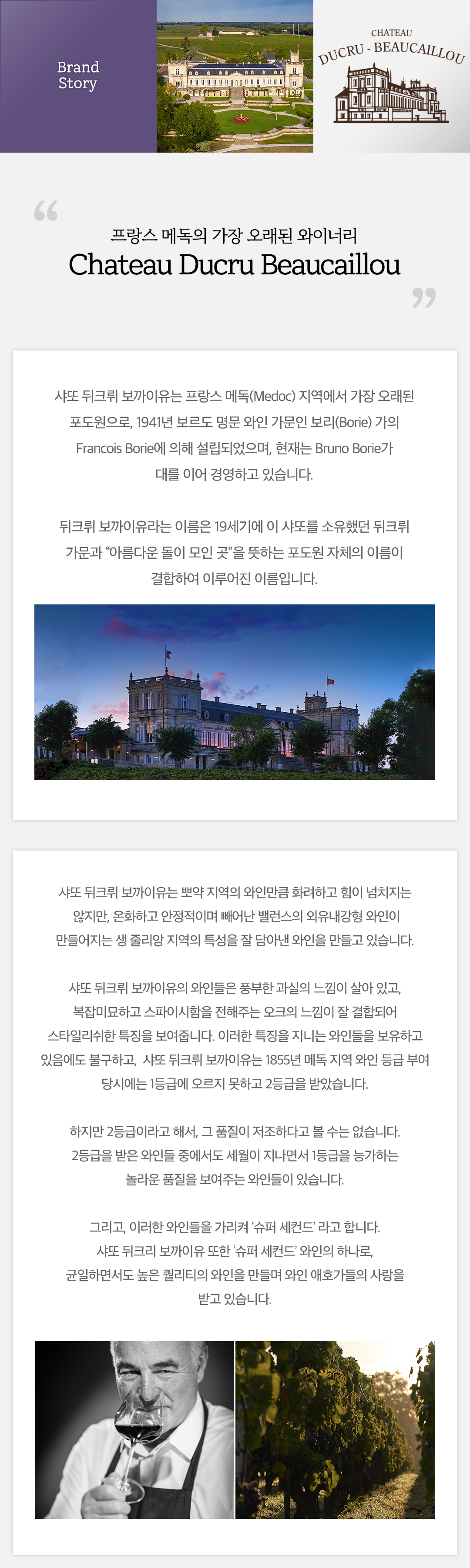 국내에 최초로 선보이는 LA CROIX DUCRU BEAUCAILLOU CUVEE COLBERT는 샤또 뒤크뤼 보까이유가 야심 차게 만든 세컨드 와인 중 리미티드 에디션으로 연간 생산량이 오직 6,000병에 한정되어 있다. 이 와인은 루이 14세 때 재무 장관인 콜베르(COLBERT)가 유럽에서 가장 아름다운 오크나무숲으로 알려진 “트롱세 숲(Troncais Forest)"에 직접 심은 참나무로 만든 45HL의 오크 통을 사용하여 만들어져 희소가치가 높은 와인이다.