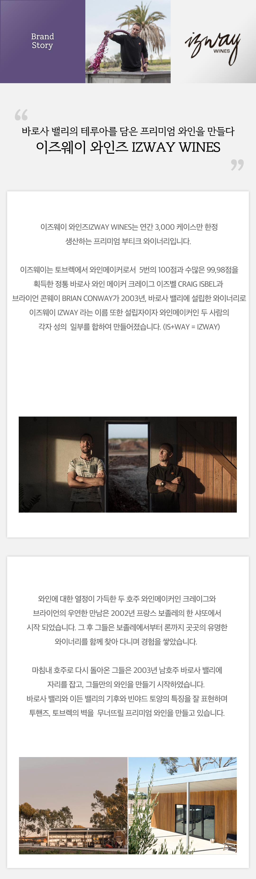 이즈웨이 해럴드는 바로사 구역에 위치한 이든 밸리(Eden Valley)에서 재배된 포도로 만들어진 와인으로, 서늘한 기후의 쉬라즈 특징을 잘 표현한 매력적인 와인이다.