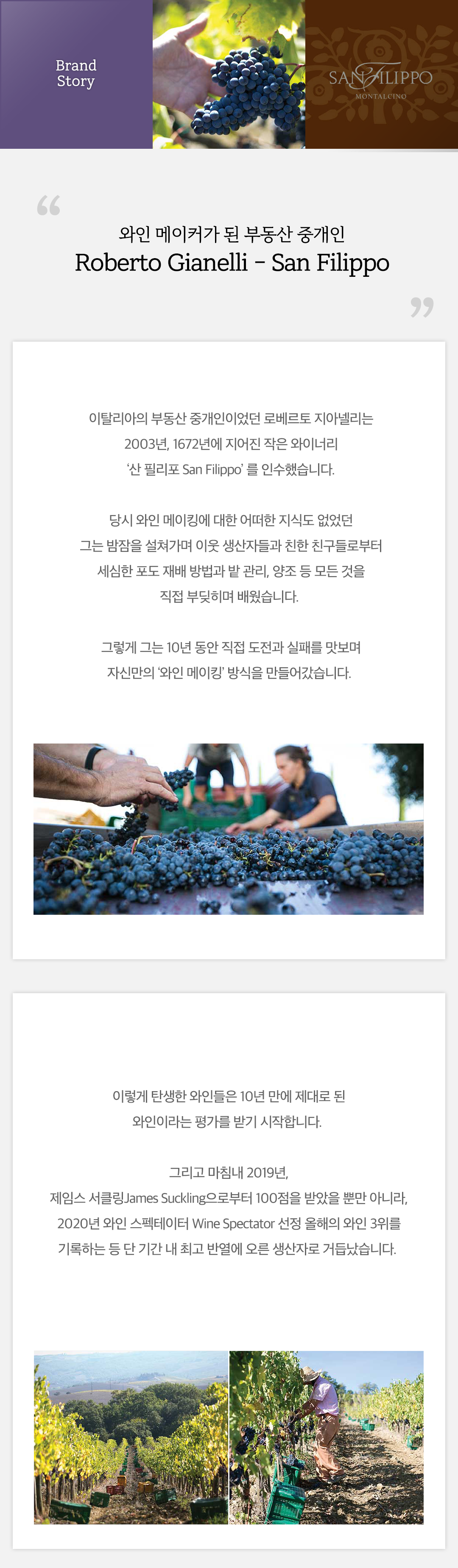 2017 빈티지, 2020 Wine Spectator 선정 TOP 100- 3위 (2015) 2020 James Suckling 선정 Italia Top 100-30위