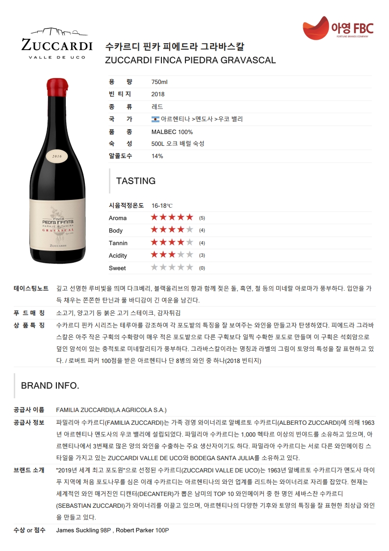수카르디 핀카 시리즈는 테루아를 강조하여 각 포도밭의 특징을 잘 보여주는 와인을 만들고자 탄생하였다. 피에드라 그라바스칼은 아주 작은 구획의 수확량이 매우 적은 포도밭으로 다른 구획보다 일찍 수확한 포도로 만들며 이 구획은 석회암으로 덮인 암석이 있는 충적토로 미네랄리티가 풍부하다. 그라바스칼이라는 명칭과 라벨의 그림이 토양의 특성을 잘 표현하고 있다.