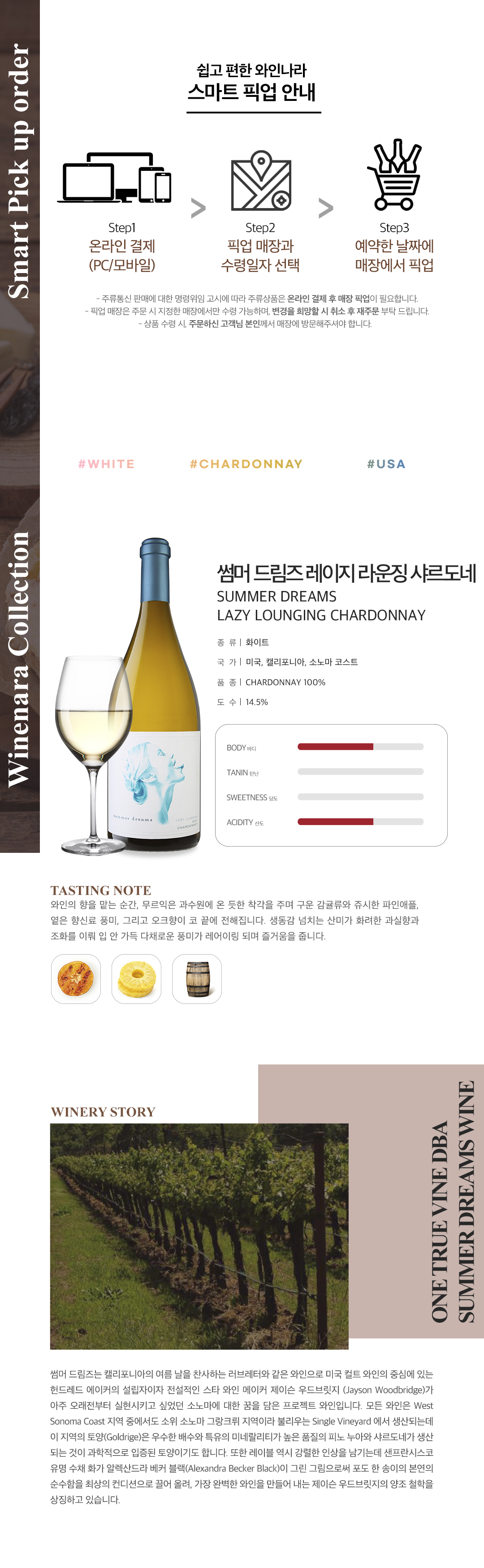 포도밭의 점토질 토양이 크리스피함과 미네랄리티를 훌륭하게 표현해내며 긴 여운을 주는 샤르도네.
