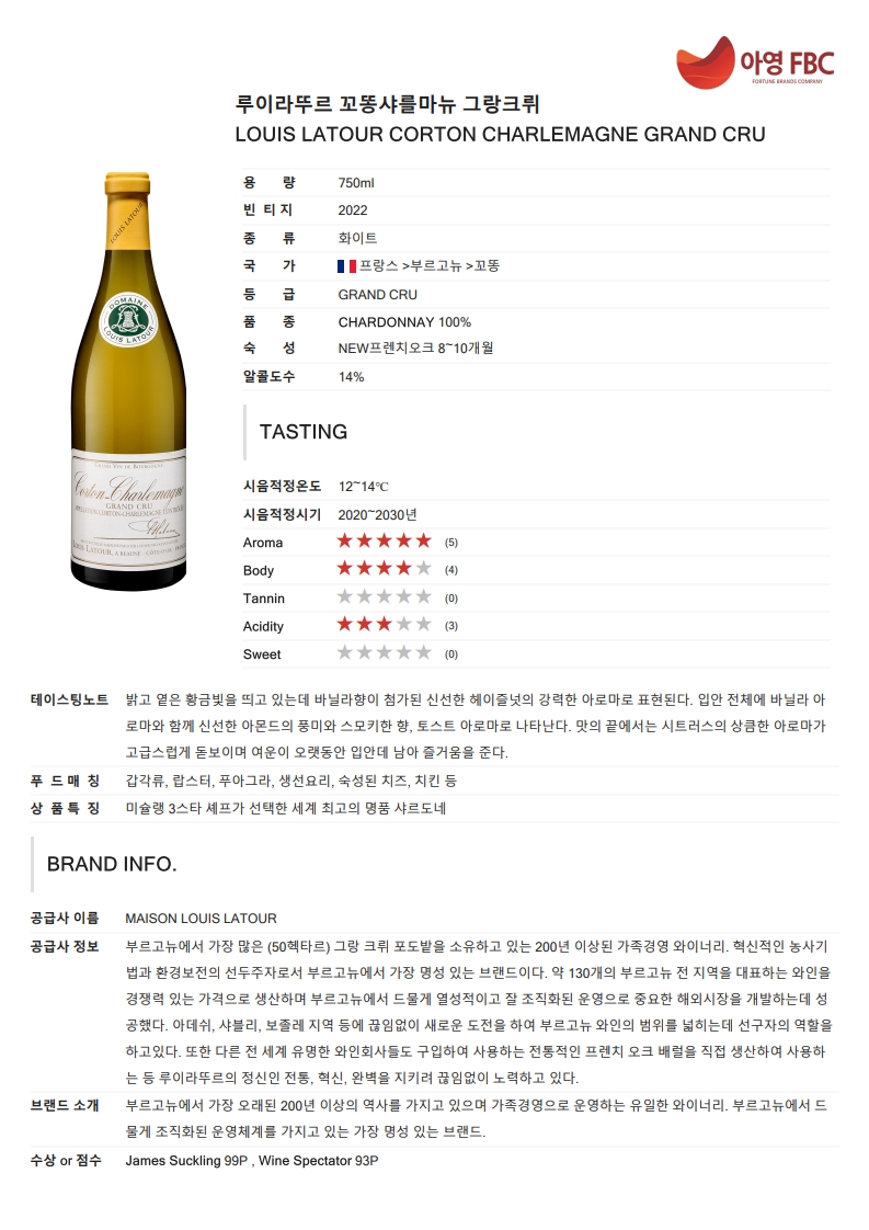 루이라뚜르 꼬똥 샤를마뉴 그랑크뤼
