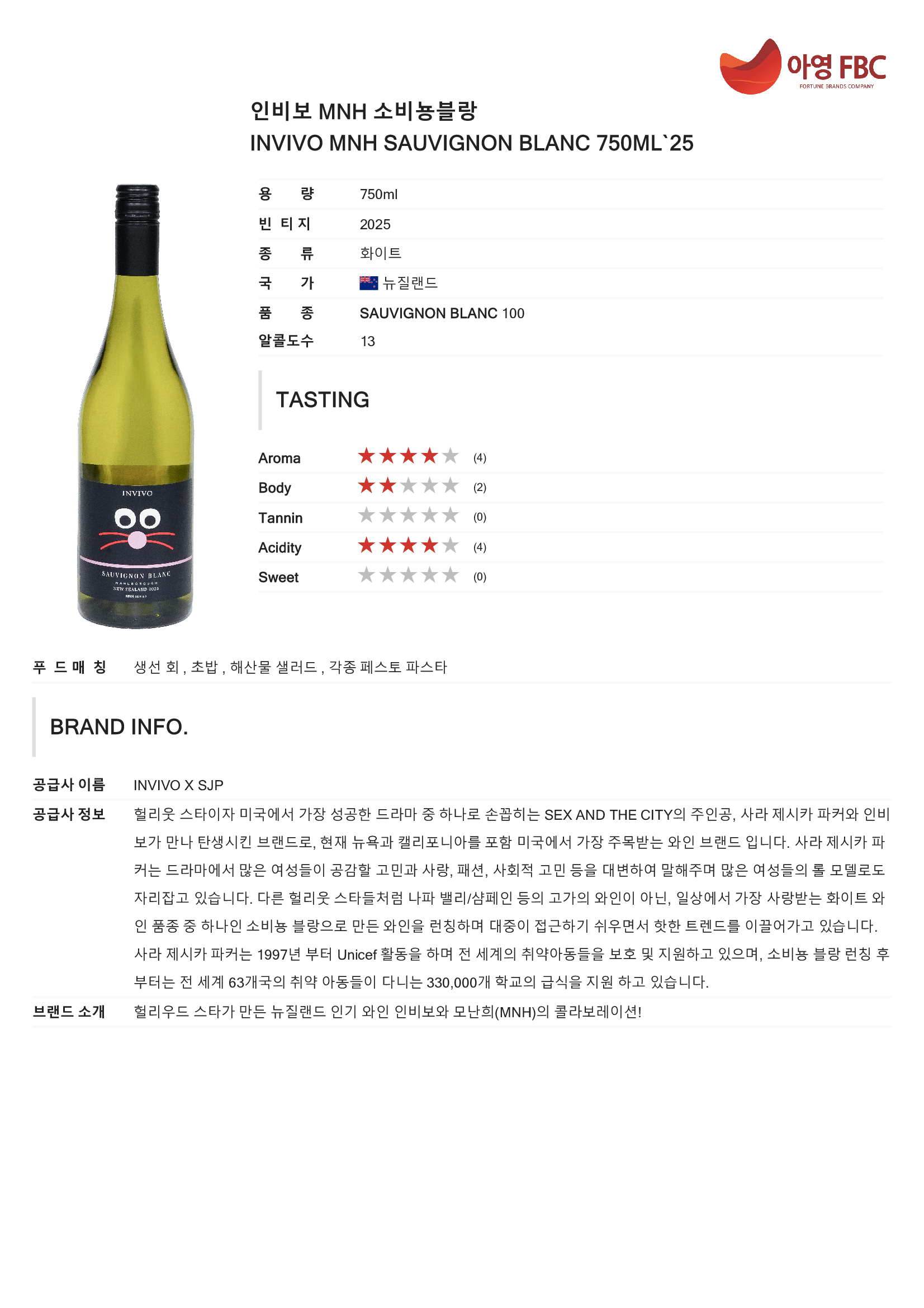 헐리우드 스타 사라 제시카 파커가 만든 뉴질랜드 인기 와인 인비보와 MNH의 콜라보레이션!