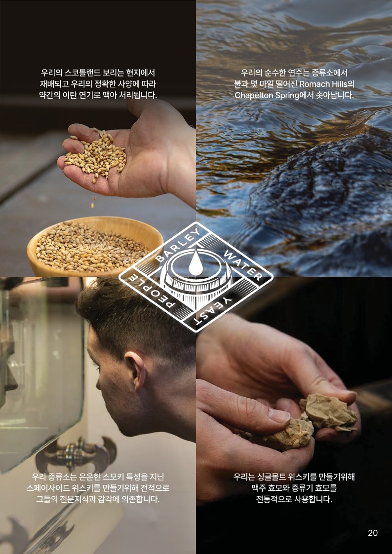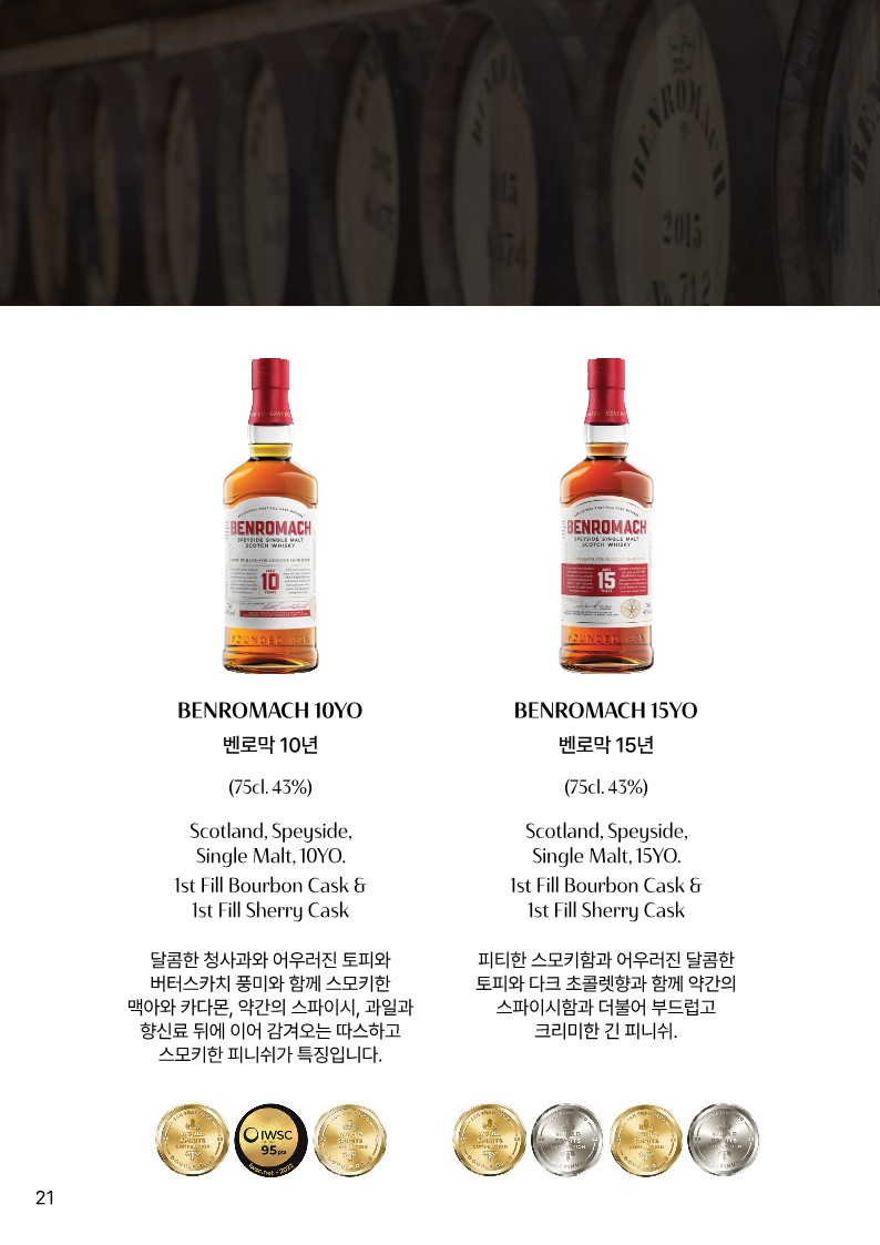 Color - Dark amber Aroma - 피티한 스모키함과 어울어진 달콤한 토피와 다크초콜렛향 Palate - 깊은 스모키함과 매콤함 뒤에 따라오는 과실과 달콤한 쉐리 초콜렛 Finish - 부드럽고 크리미한 긴 피니쉬