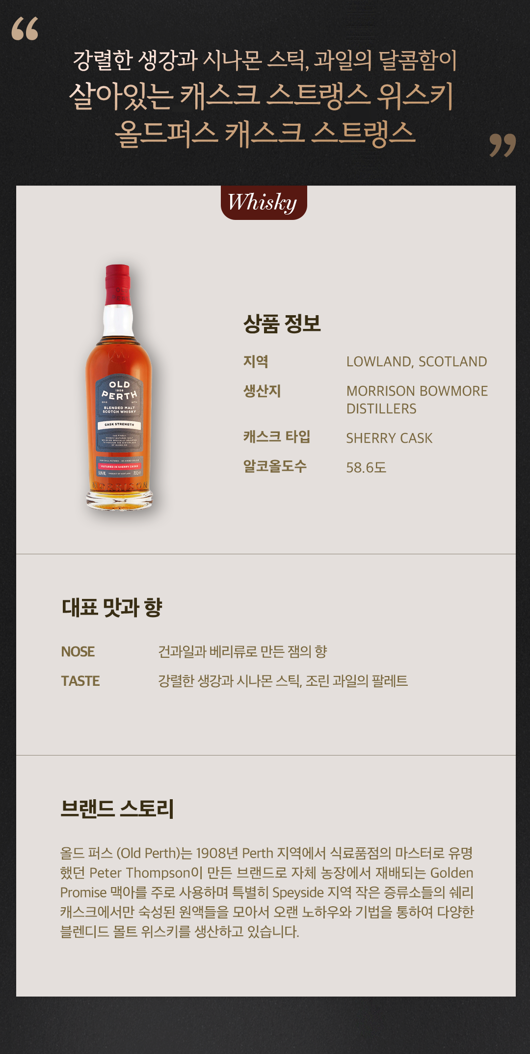강렬한 생강과 시나몬 스틱, 과일의 달콤함이 살아있는 캐스크 스트랭스 제품