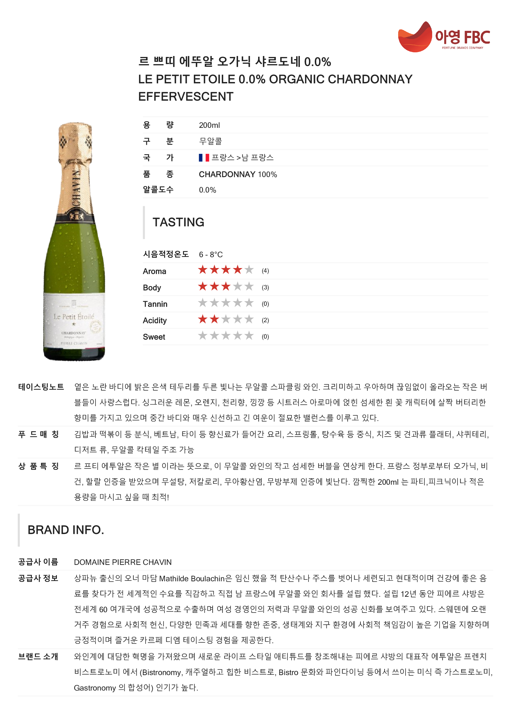 르 쁘띠 에투알 오가닉 샤르도네 스파클링 0.0%